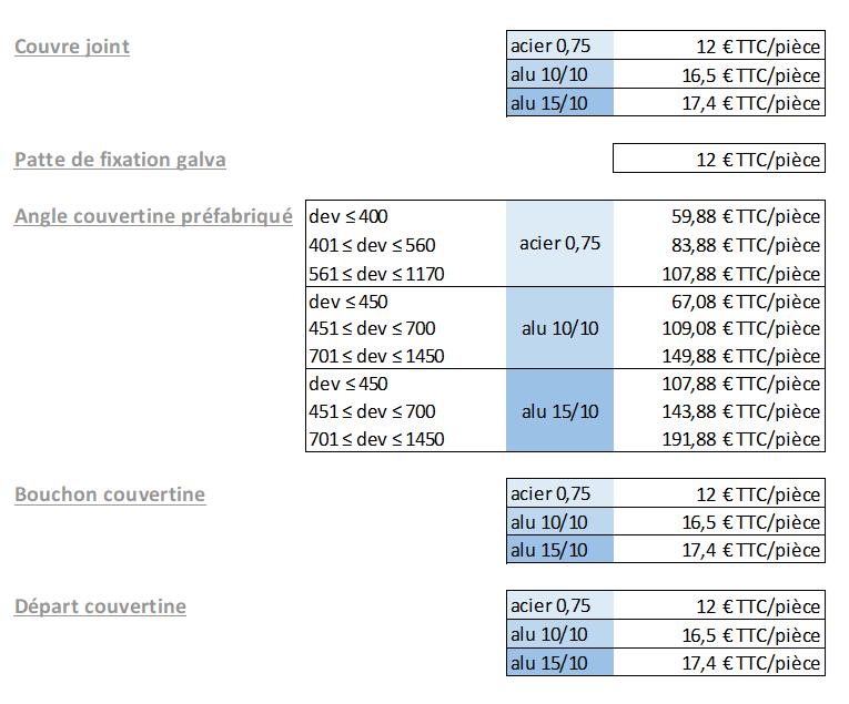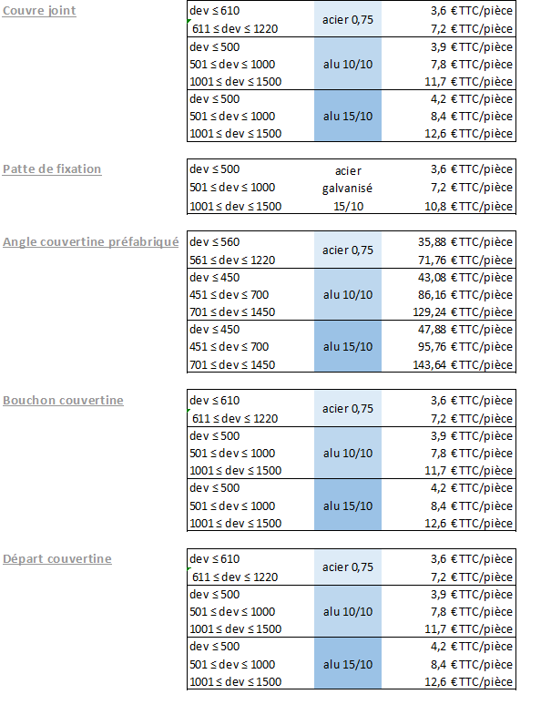 Le prix des accessoires vendus seuls est plus élevé car nous ne possédons plus vos couvertines pour les adapter. Le temps de production est plus long qu'à la normale.