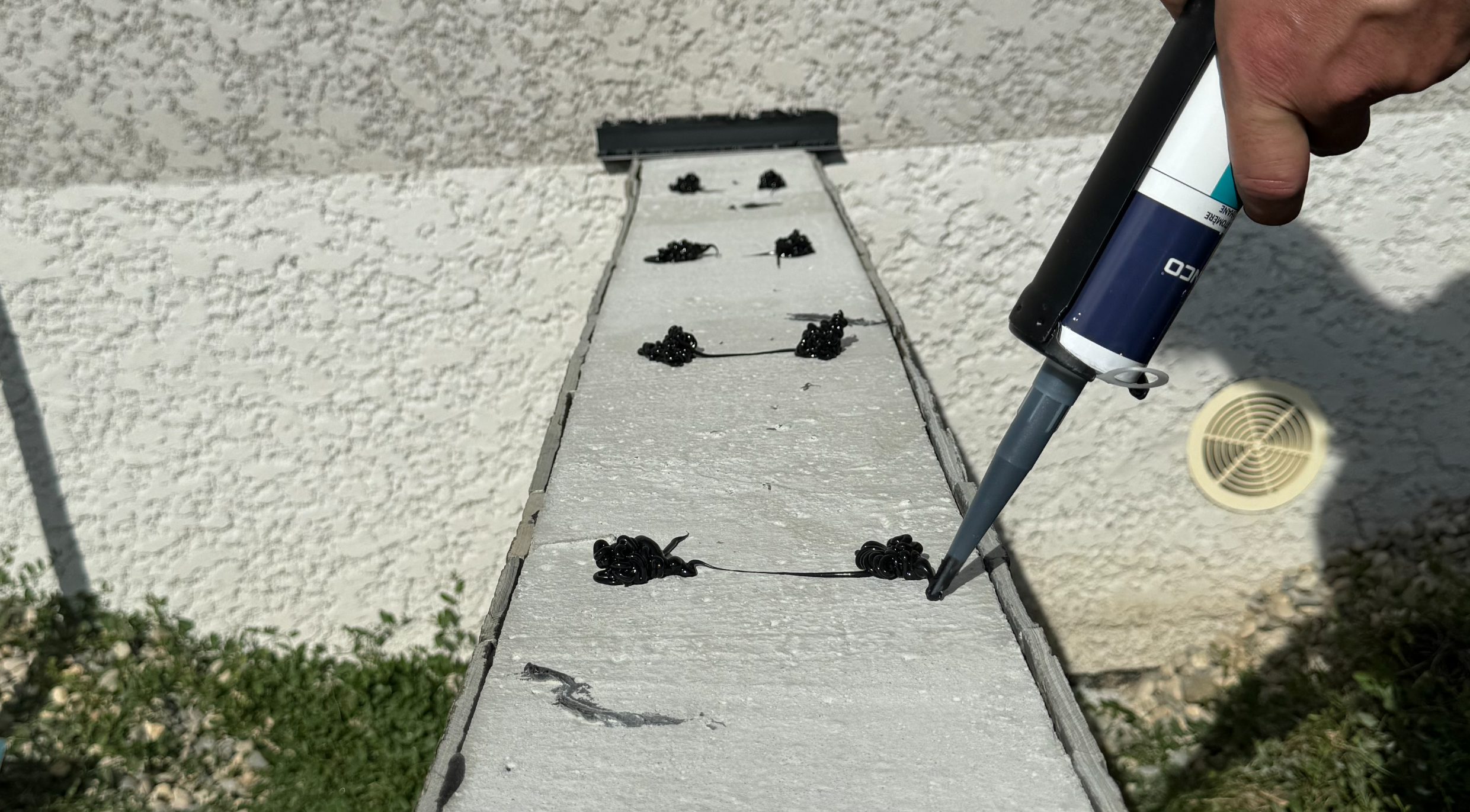 4. Appliquez le mastic colle sur la face intérieure de la couvertine ou directement sur votre muret en faisant des plots : deux sur la largeur environ tous les 50 cm.
