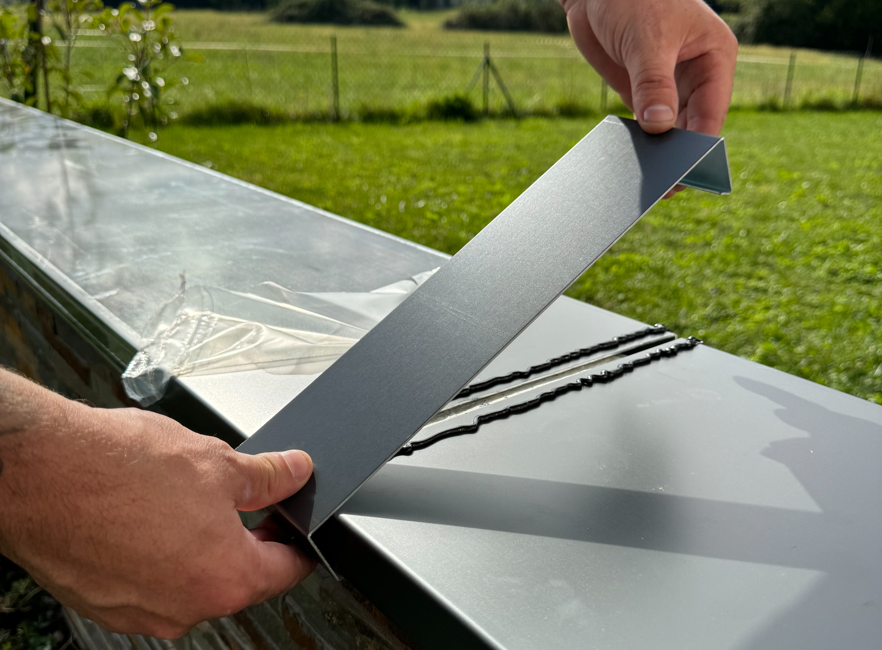 Vous pouvez raccorder vos couvertines à l’aide de couvre-joint. Ils doivent être siliconés et clipsés pour une finition parfaite.