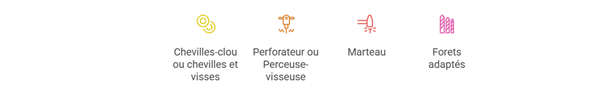 - Perforateur ou Perceuse-visseuse : Pour percer les trous de fixation et visser solidement les pattes.